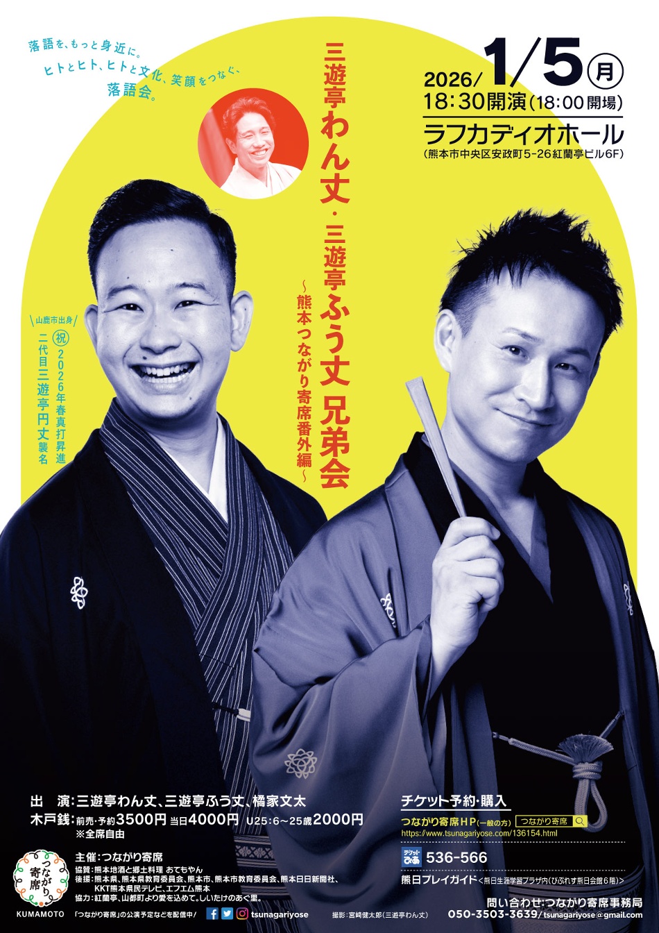 兄弟子であるふう丈さん(山鹿市出身)が、このたび2026年春にめでたく真打に昇進することとなりました。