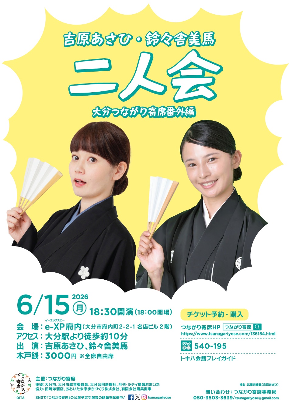 大分銀行赤レンガ館裏にある e-XP府内〔イーエックスピーふない〕にて、女性若手落語家2名による落語会を開催します。