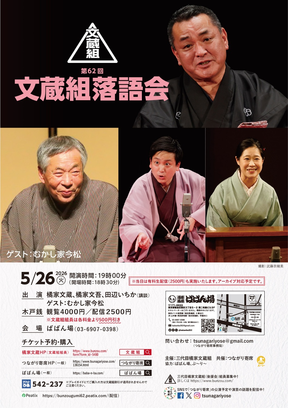 主催:三代目橘家文蔵組 共催:つながり寄席 協力:ばばん場、ぷ~り~